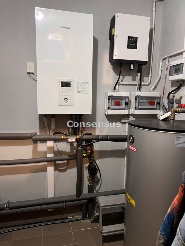 Budynek jest w bardzo dobrym stanie technicznym, w którym zainstalowano nowoczesną pompę ciepła firmy Panasonic zasilaną instalacją fotowoltaiczną o parametrach: